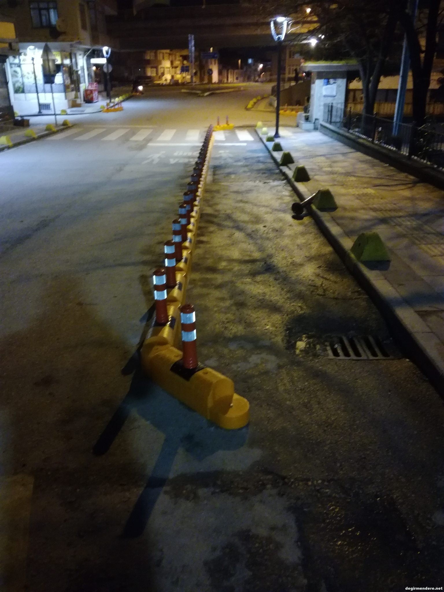 Değirmendere’de bazı bölgelerde araç trafiği sıkışıklığını engellemek için dubalar koyuldu.